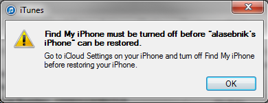 Find my iPhone must be turned off before the restore. See snapshot below.